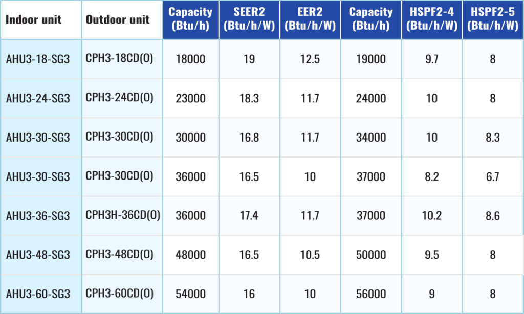 Easy to Enjoy Top-Level Whole Home Comfort: • Innovative filtration module compatible with 1″ to 4″ filters • Smart functions including OTA & iCheck • Optional auxiliary heat kit • Demand response capability • Large & Consistent Airflow for Different Ductwork Conditions